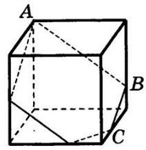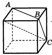 На каком рисунке изображено сечение куба плоскостью ABC?