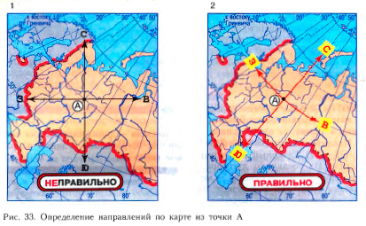 На карте направление запад -восток совпадает с направлением