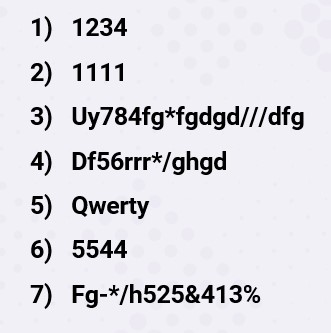 Посмотрите на картинку. Под какими номерами находятся ненадёжные пароли?