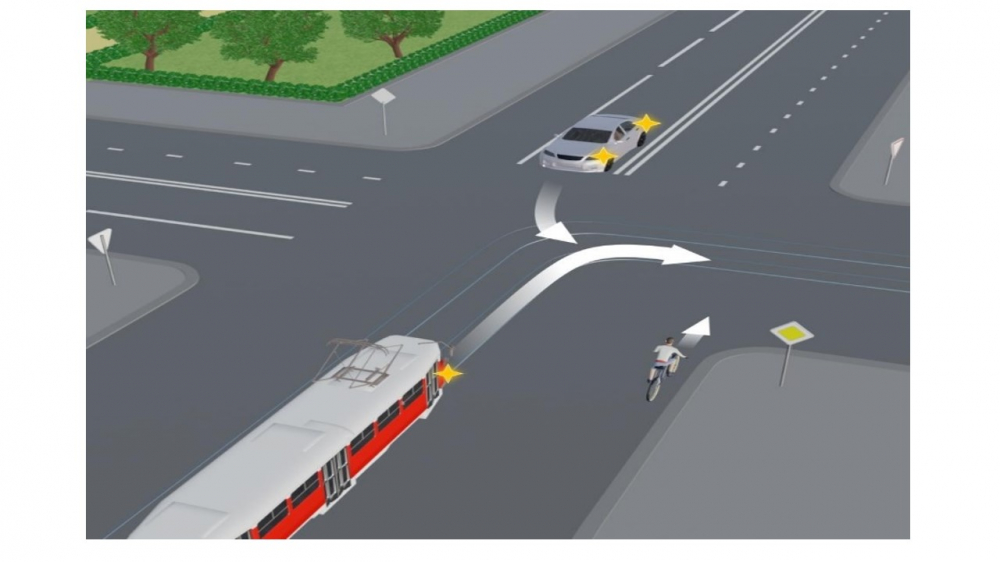 - Разрешается только под прямым углом, когда дорога хорошо просматривается в обе стороны и в зоне видимости нет пешеходных переходов или перекрестка.