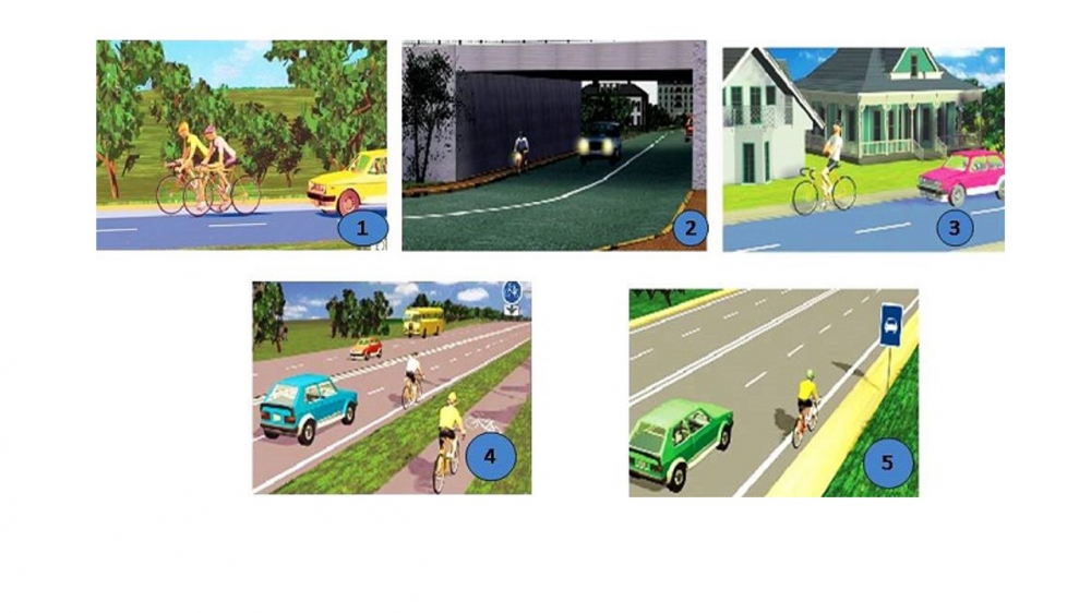 На каких иллюстрациях велосипедисты не нарушают правила дорожного движения?