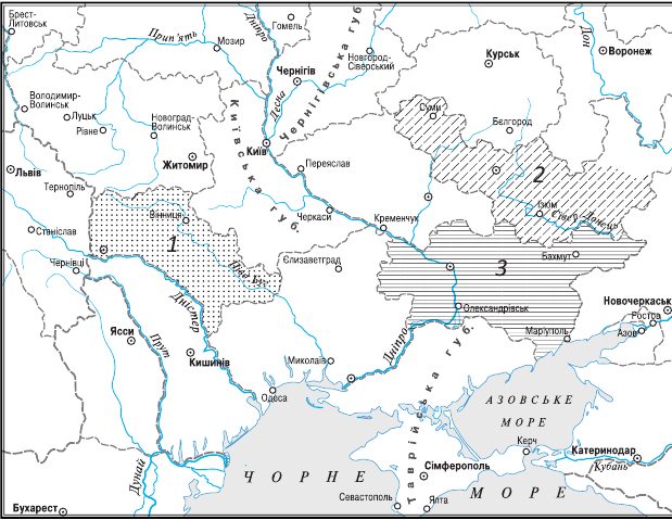 - 1) Подільська, 2) Харківська, 3) Катеринославська