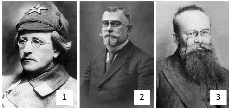 Б) 1-Г. Антонов-Овсієнко; 2-К. Левицький; 3-М. Грушевський; 4-С. Єфремов;
