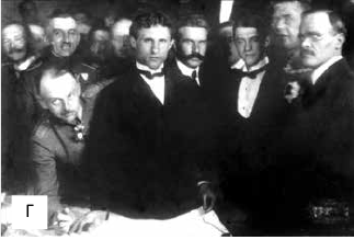 Г)1-І. Боберський;2-К. Трильовський; 3-Є. Чикаленко; 4-М. Міхновський