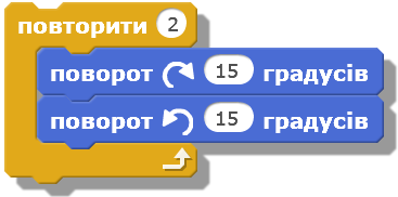 На скільки градусів буде виконано поворот у результаті виконання такого циклу?