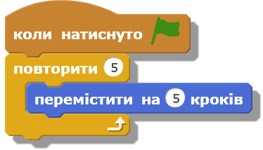 - Об'єкт переміститься вперед на 5 кроків