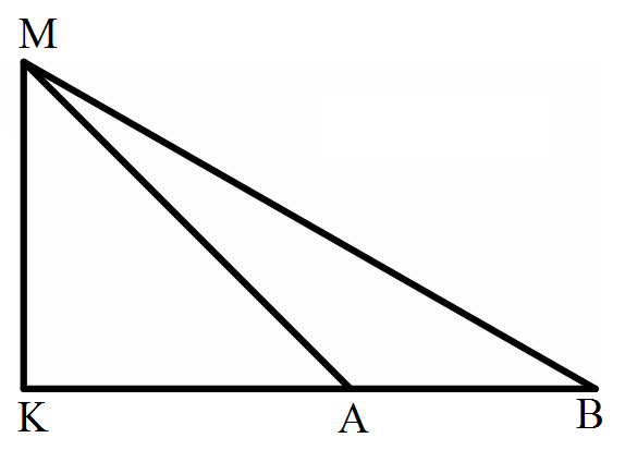 Из точки М к прямой m проведены перпендикуляр МК=12 и наклонные МА=20 и МВ=15. Найдите расстояние AK, BK, АВ (если \(К\inАВ\)).