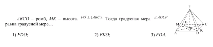 Гипотенуза прямоугольного равнобедренного треугольника лежит в плоскости а, а катет наклонен к этой плоскости под углом 30°. Найдите угол между плоскостью α и плоскостью треугольника. (в ответ введите число, единицы измерения писать не надо)