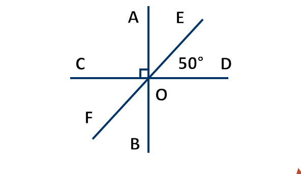 - ∠ АОЕ = 50°, ∠ COF = 40°