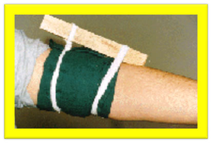 Приданием повреждённой конечности возвышенного положения;