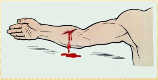 кровь спокойно вытекает из раны