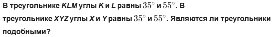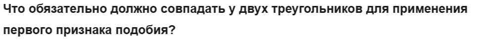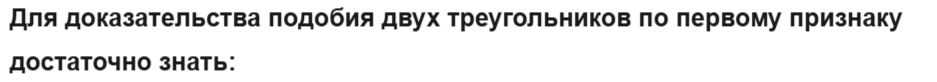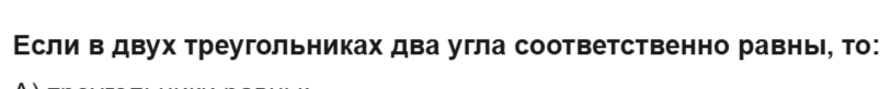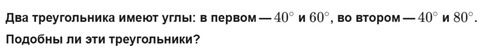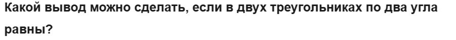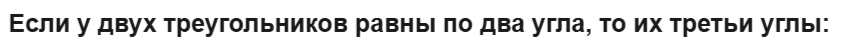 - Если два угла одного треугольника соответственно равны двум углам другого треугольника, то такие треугольники подобны.
