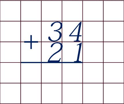Письменный приём сложения вида 34 + 21