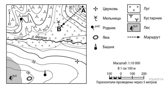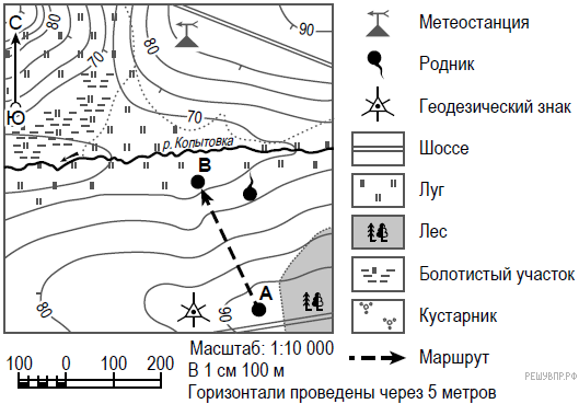 Какой объект может быть расположен на участке, по которому проходит маршрут АБ? Выберите правильный ответ