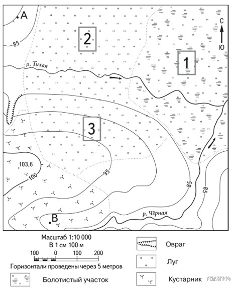 В каком направлении от оврага расположен участок 2?