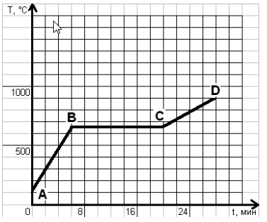 На рисунке изображен график изменения температуры тела с течением времени.