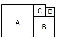 Фигуры A, B, C, D - квадраты. Периметр квадрата D равен 8 см, а периметр квадрата С равен 12 см. Чему равна площадь квадрата А? В ответ запишите только число, без единиц измерения. Например: 9