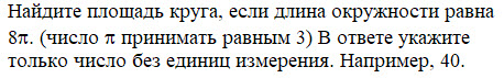 Если площадь круга равна \(256\pi\), то чему равен радиус этого круга? В ответе укажите только число без единицы измерения. Например, 45.