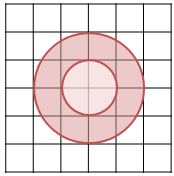 На клетчатой бумаге нарисованы два круга. Площадь внутреннего круга равна 34. Найдите площадь закрашенной фигуры.