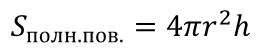 Укажите формулу для вычисления площади полной поверхности цилиндра.