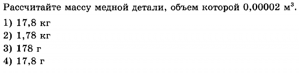 В4 Плотность вещества. Расчет массы и объема тела по его плотности.