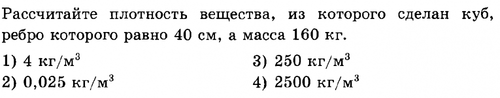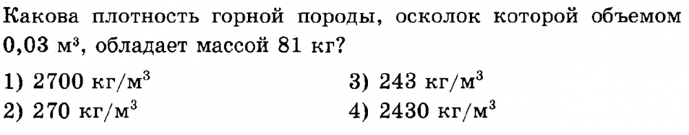 В1 Плотность вещества. Расчет массы и объема тела по его плотности.