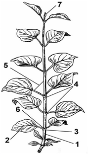 Запишите названия частей побега, обозначенных на рисунке цифрами 1-7.