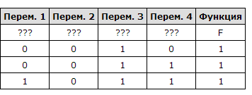 Логическая функция F задаётся выражением x ∧ ¬y ∧ (¬z ∨ w). На рисунке приведён фрагмент таблицы истинности функции F, содержащий все наборы аргументов, при которых функция F истинна. Определите, какому столбцу таблицы истинности функции F соответствует каждая из переменных w, x, y, z.