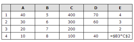 Примечание. Знак $ обозначает абсолютную адресацию.
