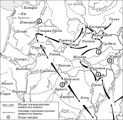 - в результате событий, обозначенных на схеме, русские земли попали в зависимость