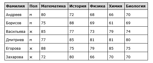Сколько записей удовлетворяют условию «Пол = 'ж' ИЛИ Физика = 79»?