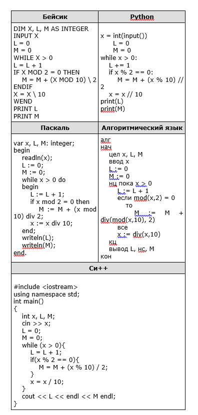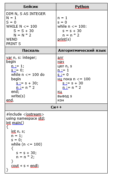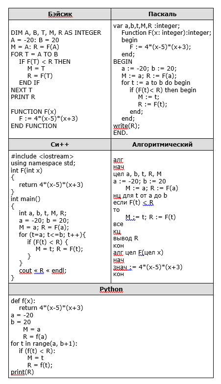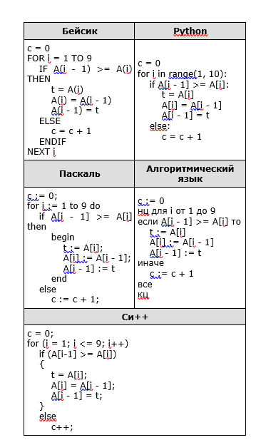 Определите, что будет напечатано в результате выполнения программы, записанной ниже на разных языках программирования.
