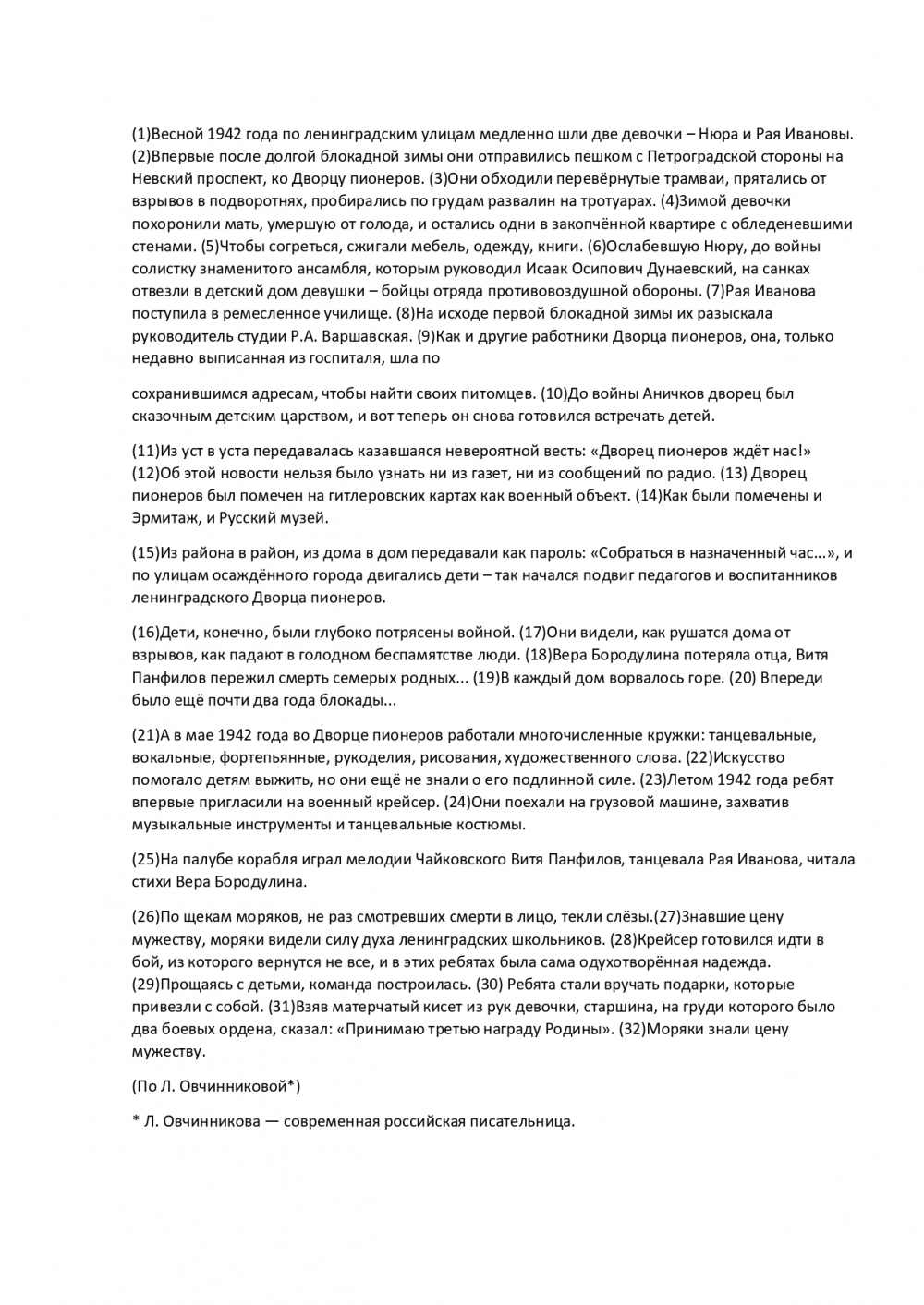 (9)Как и другие работники Дворца пионеров, она, только недавно выписанная из госпиталя, шла по сохранившимся адресам, чтобы найти своих питомцев.