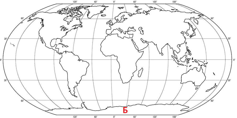 Отметьте все океаны, которые омывают материк, обозначенный на карте буквой Б.