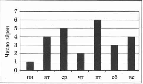 В течение недели Хомяк отмечал на диаграмме, сколько зёрен пшеницы он нашёл за день