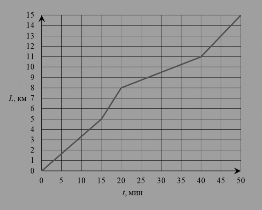 На рисунке представлен график зависимости пути L, пройденного лыжником, от времени t.