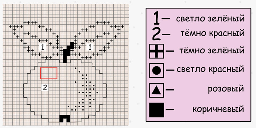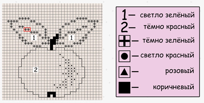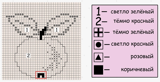 Каким цветом надо вышивать кусок яблока, заключенный в рамку?