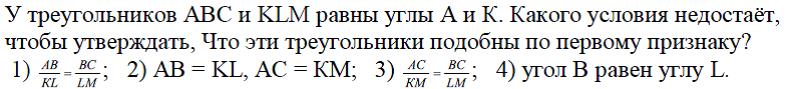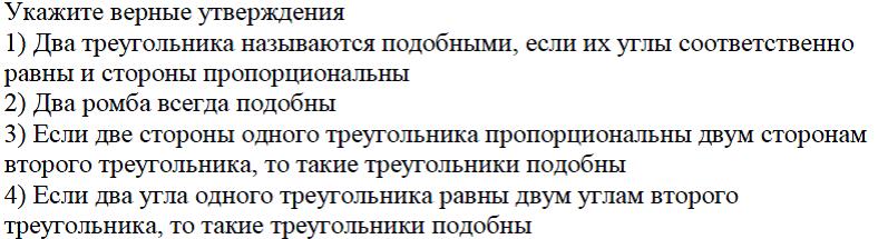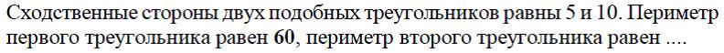 Тест рассчитан на проверку знаний по теме "Подобие треугольников". Время выполнения теста 20 минут
