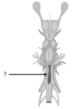Назови отдел мозга рыб, обозначенный знаком вопроса.