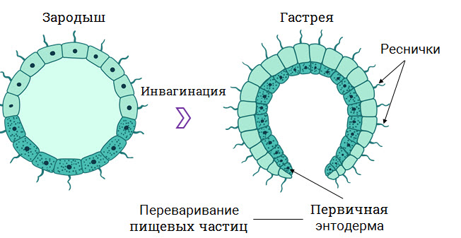 - внутренние органы образуются из двух зародышевых листков