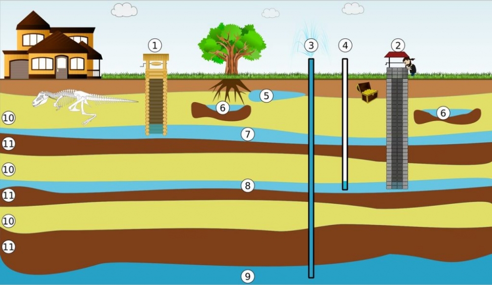 Под каким номером на данном рисунке показаны водоупорные породы?