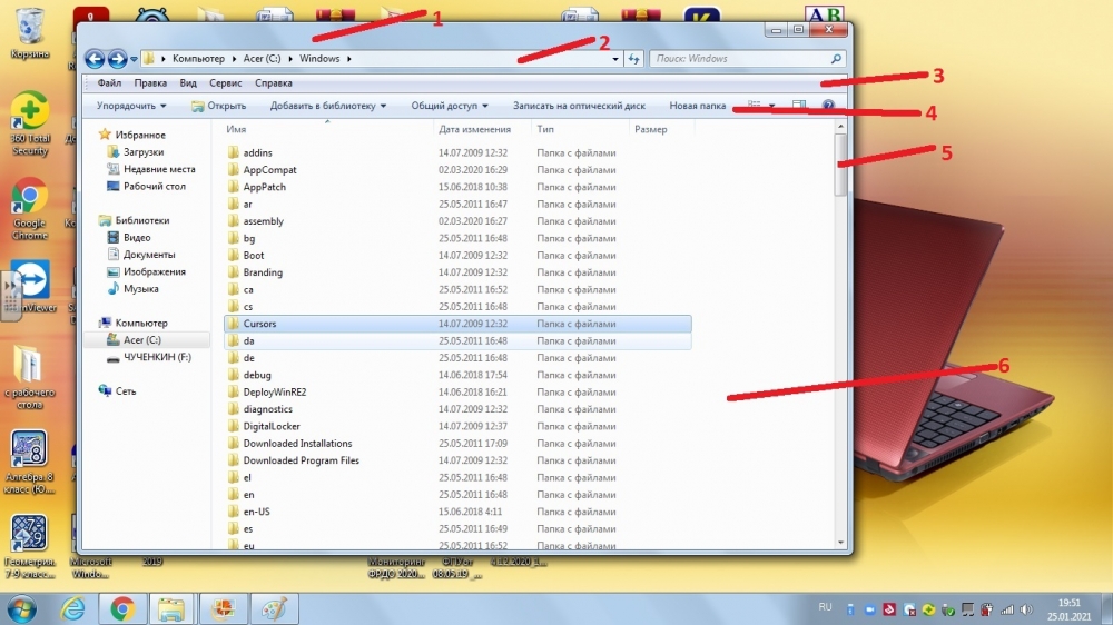 Под каким номером на рисунке обозначена полоса прокрутки?