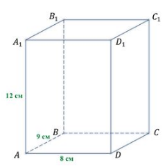 Измерения прямоугольного параллелепипеда раны 8 см, 9 см и 12 см. Пользуясь данными рисунка, найдите длину вектора \(\overrightarrow{C_1C}\). В ответе укажите только число.