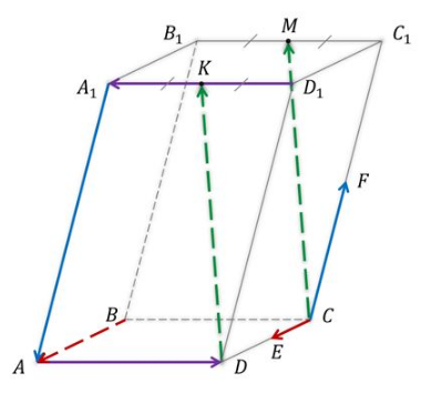 Векторы \(\vec{MF}+\vec{NK}-\vec{NF\ }\) и \(\vec{AM}-\vec{AC}-\vec{CK}\)
