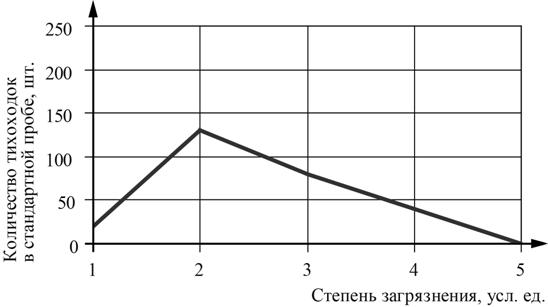из зон с разной степенью загрязнения среды. (Тихоходки – тип микроскопических беспозвоночных, близких членистоногим.) Степень загрязнения окружающей среды определялась в условных единицах: 0 – отсутствие загрязнения; 5 – максимальное загрязнение.