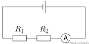 Амперметр показывает силу тока Iобщ = 4А, R1 =1,5 Ом, R2= 2,5 Ом. Вычислить напряжение на каждом из сопротивлений и напряжение цепи общее.