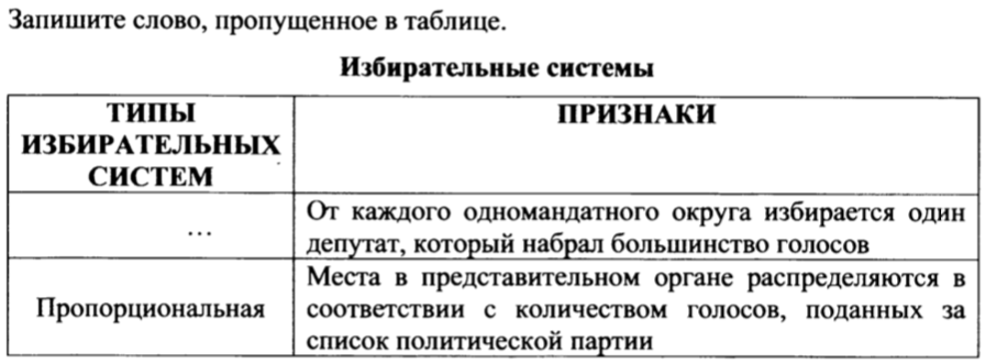 В стране Z прошли парламентские выборы. Найдите в приведённом ниже списке черты, свидетельствующие о том, что в стране Z выборы парламента проходят по мажоритарной системе.