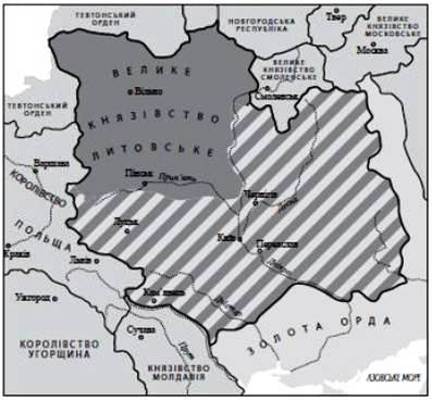 Яка подія відіграла вирішальну роль у переході земель, позначених на картосхемі штрихуванням, до складу ВКЛ?