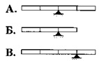 4. Какой из изображённых на рисунке рычагов позволяет получить выигрыш в силе в 2 раза, если силы прикладывать к концам рычага?