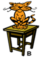 The cat is ... the stool.